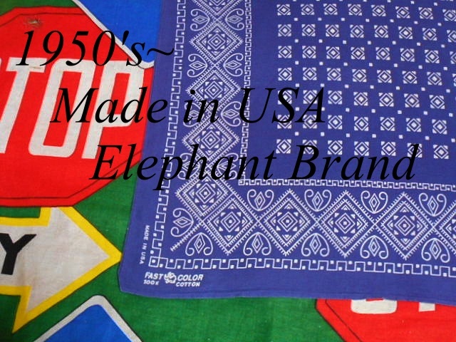 Item : 1950's~ Made in USA Elephant Brand FAST COLOR Vintage Cotton Print Bandana