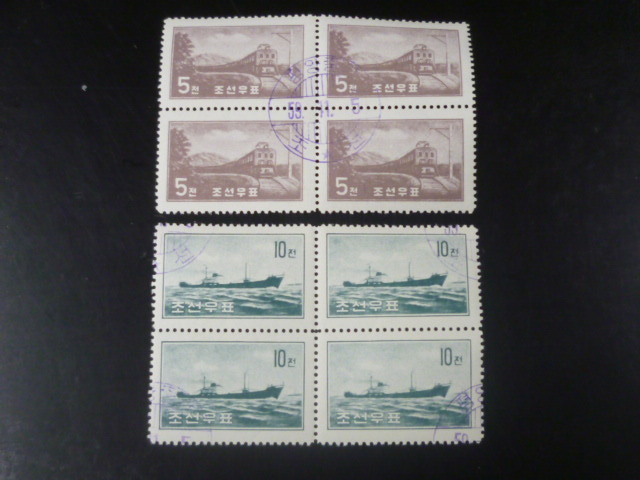 19 S 北朝鮮切手 1959年 SC#201-02 田型 2種完 1種、初日印付