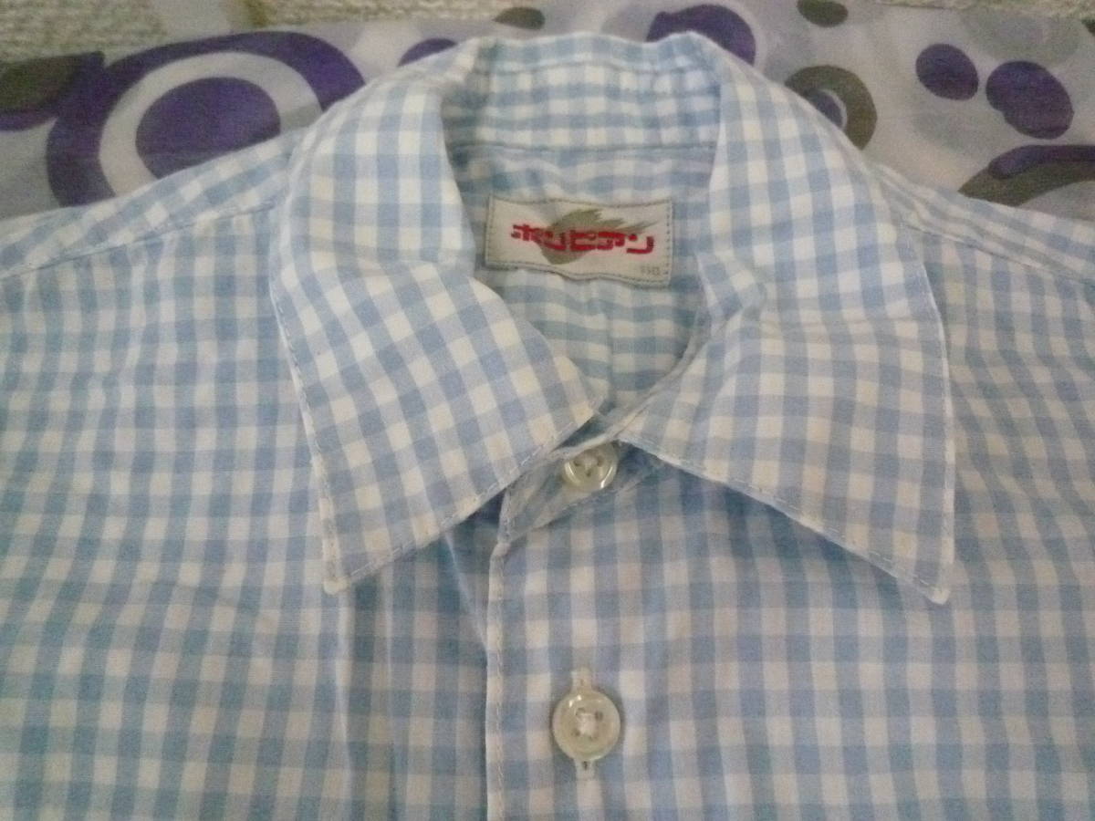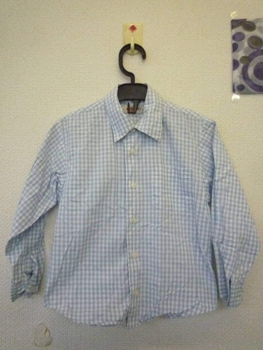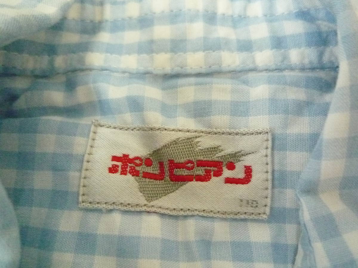 ★ポンピアン 長袖シャツ チェック柄 水色(110)