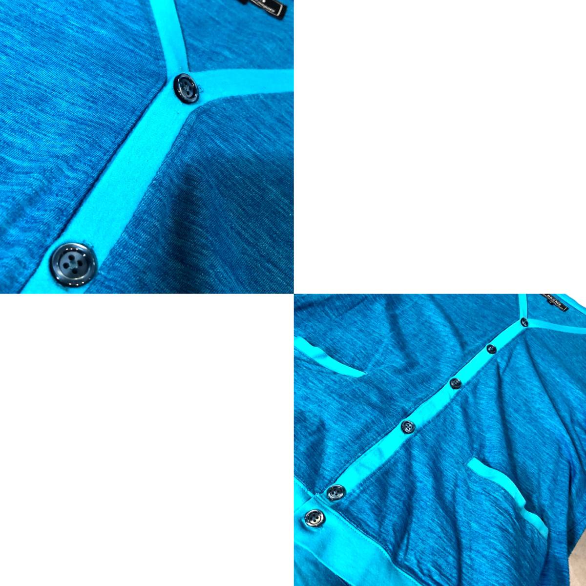 ブルーカラーのコットン素材でできたカーディガンでカラフルなデザインになっています★