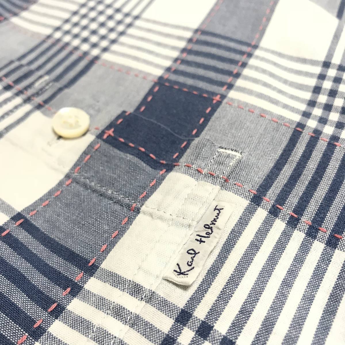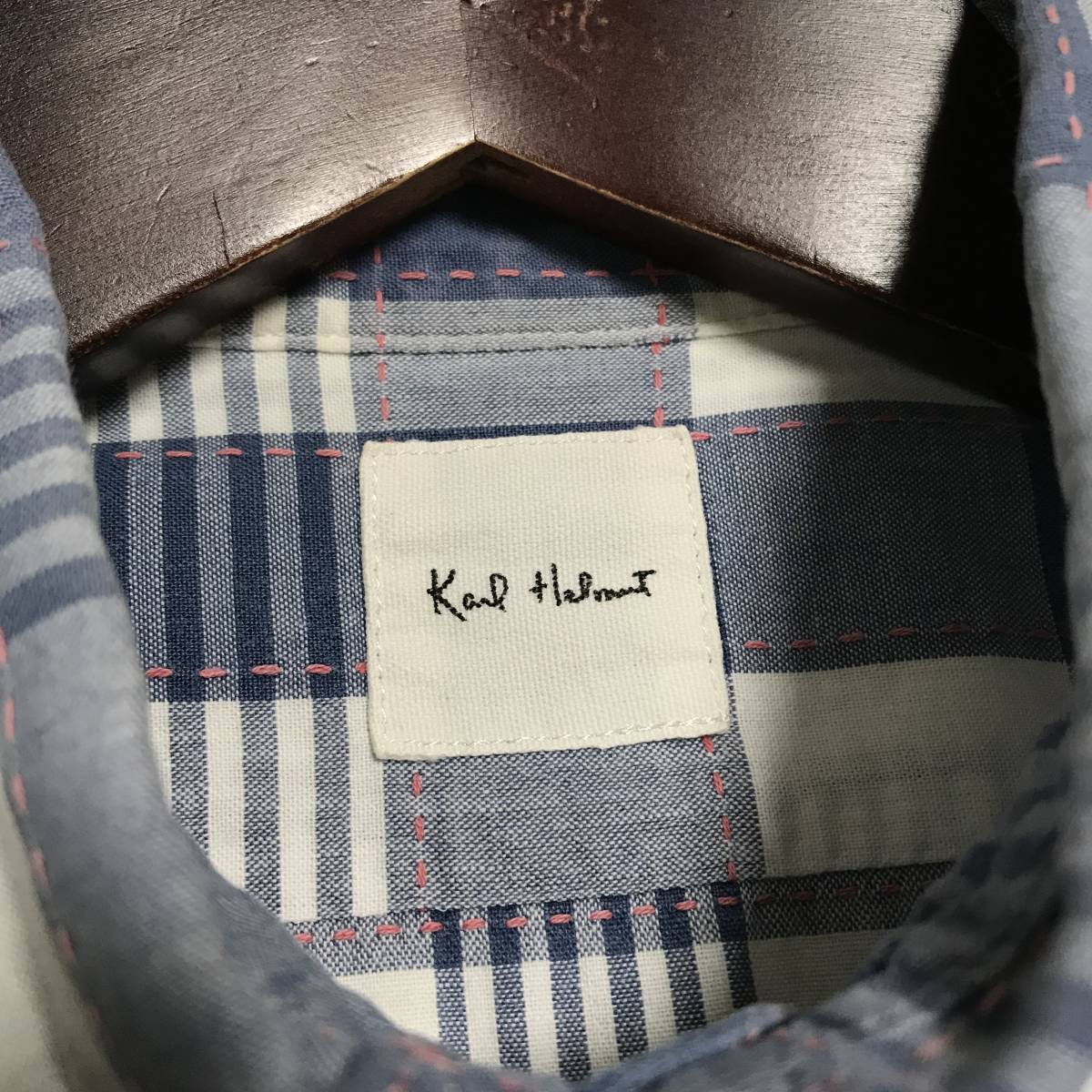 ★カールヘルム KARL HELMUT★メンズ チェック柄 パッチワーク シャツ★半袖★コットン★size M★ブルー系★メンズ SSS |