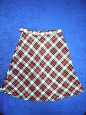 白地に赤や緑の線が入ったチェックスカートです。 |