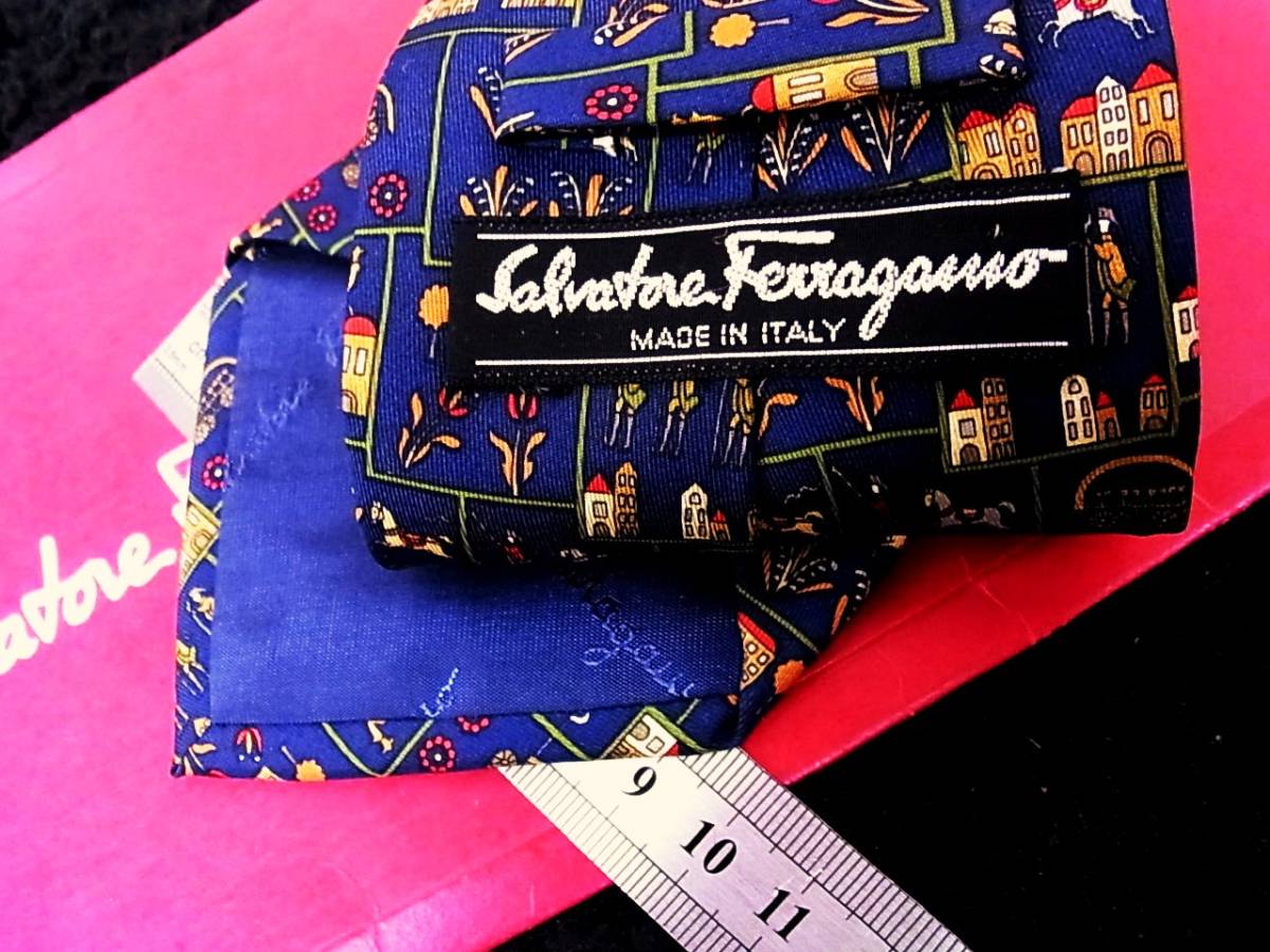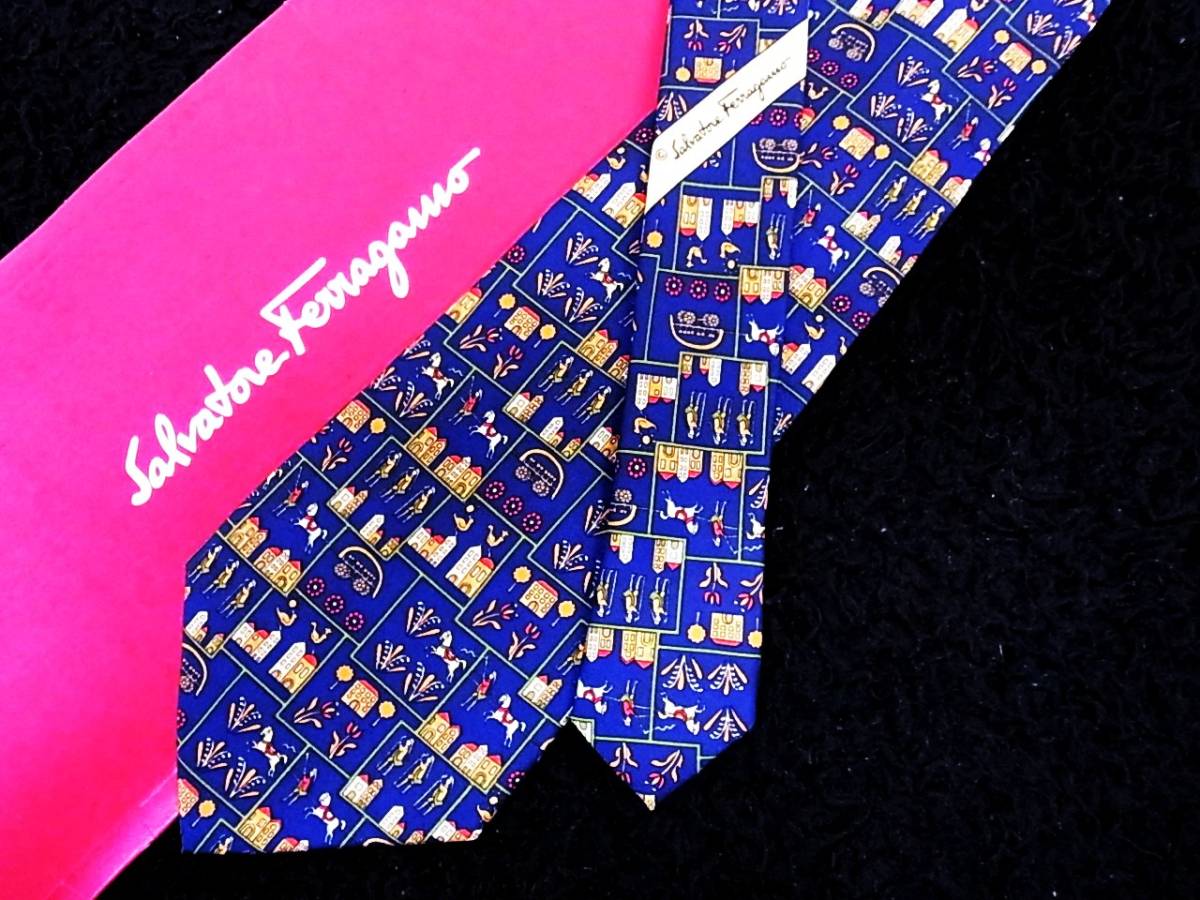 ★☆*:.*:K1371美品 フェラガモ 【白馬・兵隊・鳥】ネクタイ