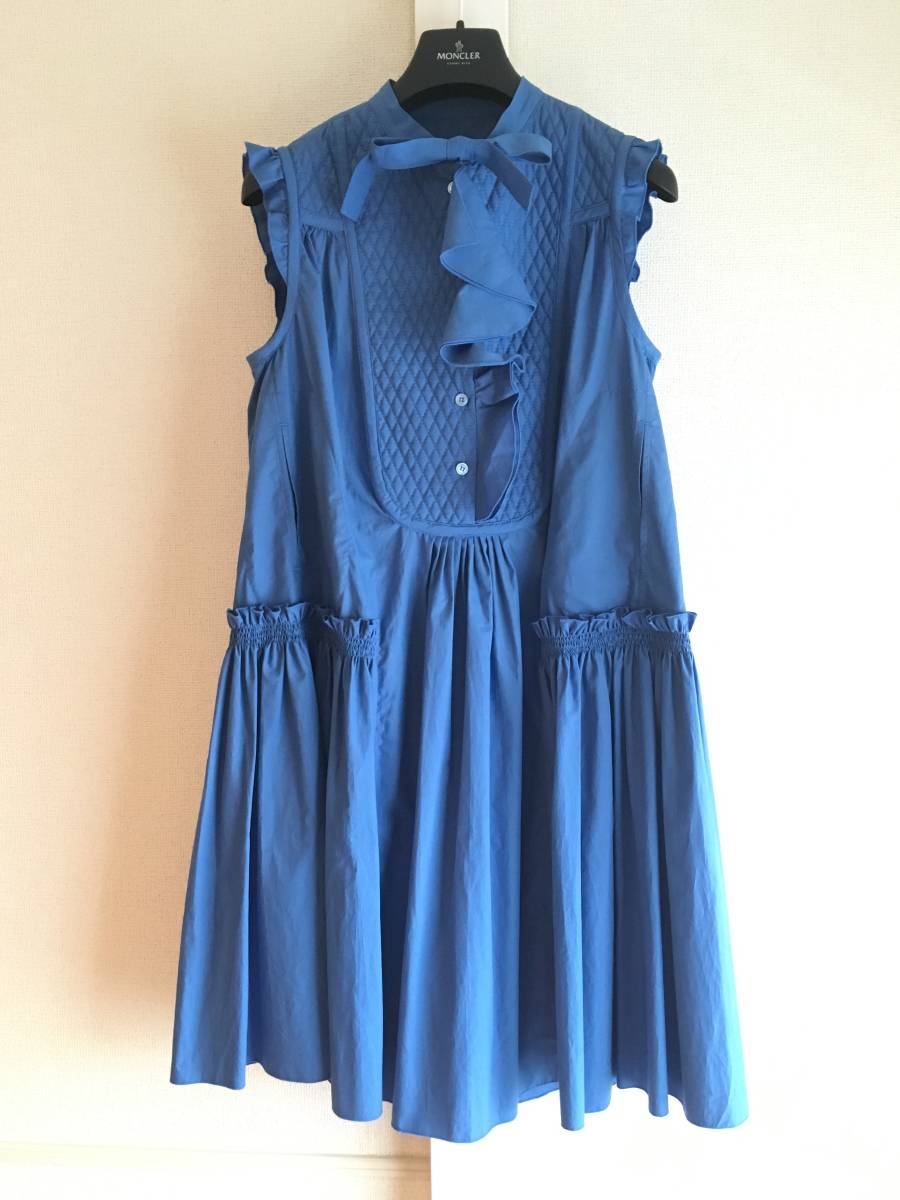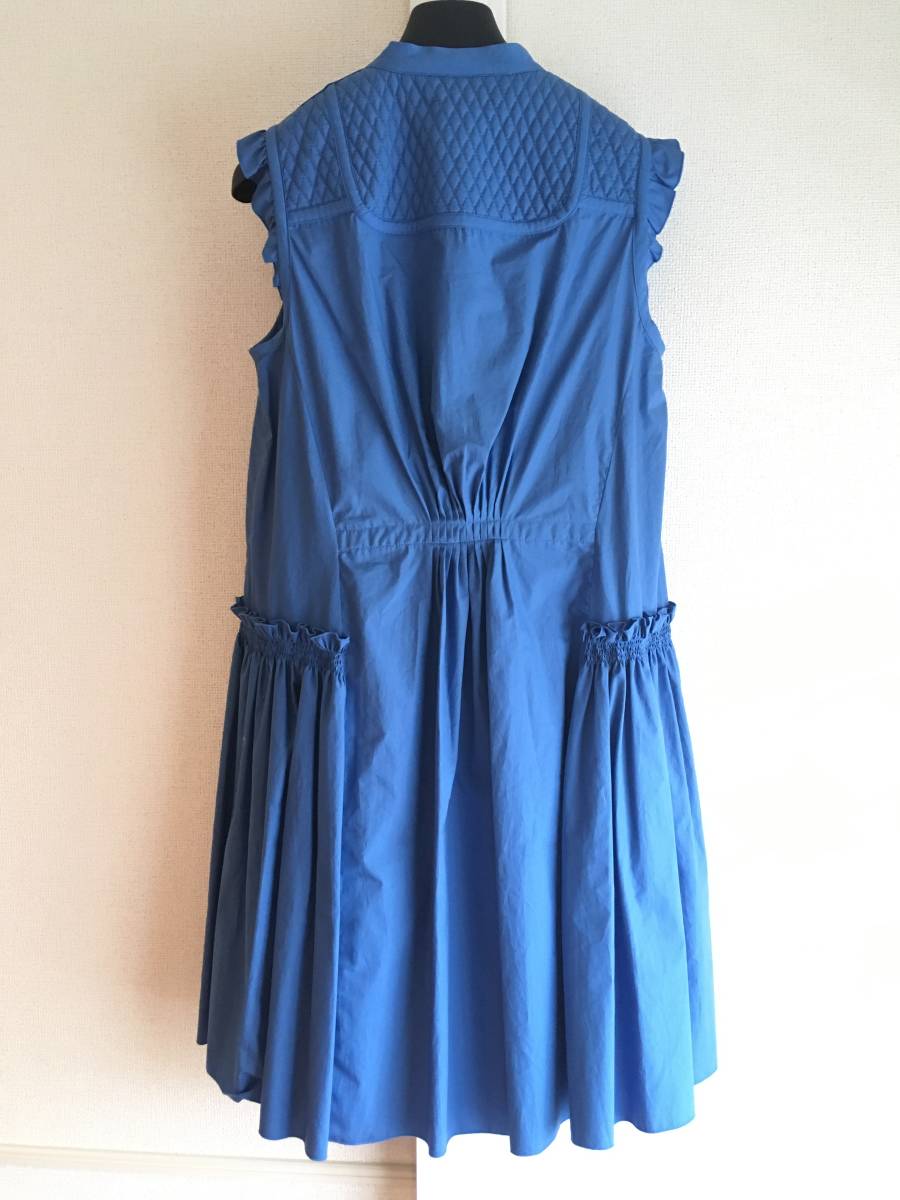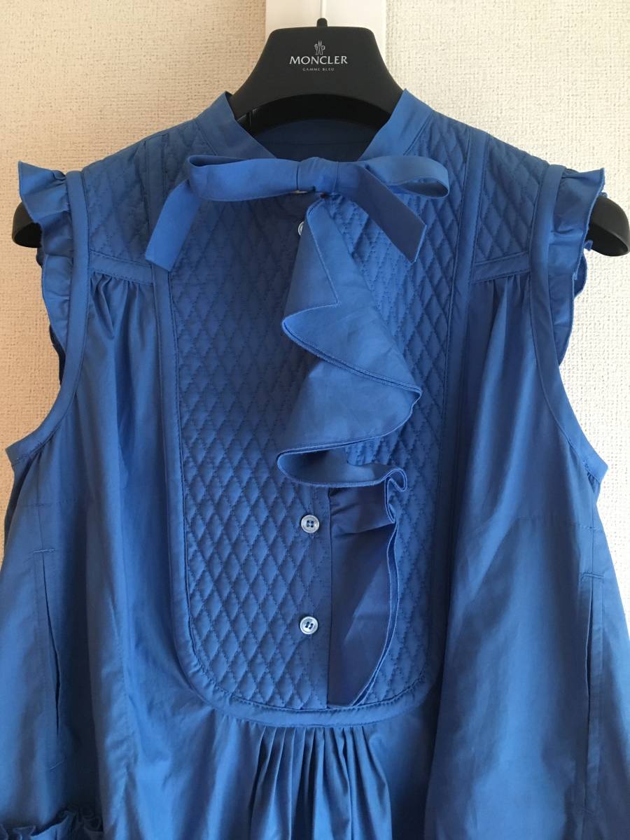 新品 本物 モンクレール コットン ワンピース ドレス 40 MONCLER 青 ブルー サマー ドレス シャツ ワンピース リボン フリル ギャザー