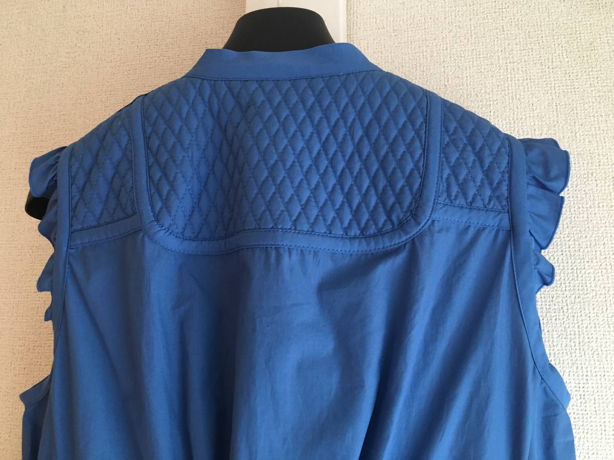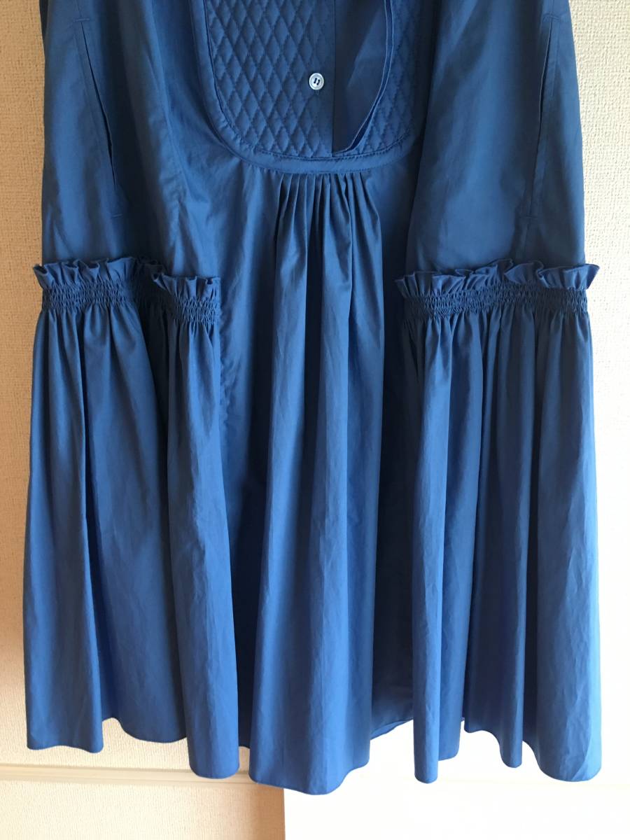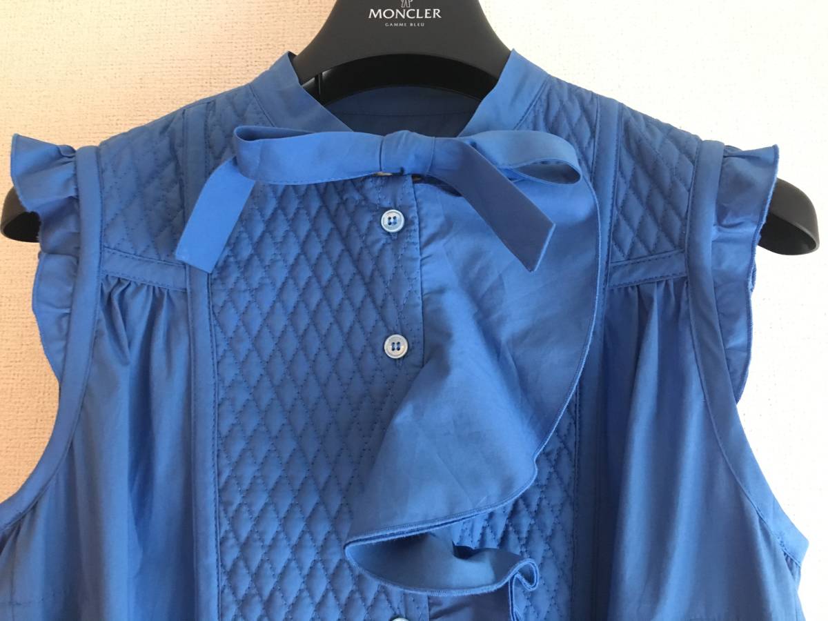新品 本物 モンクレール コットン ワンピース ドレス 40 MONCLER 青 ブルー サマー ドレス シャツ ワンピース リボン フリル ギャザー