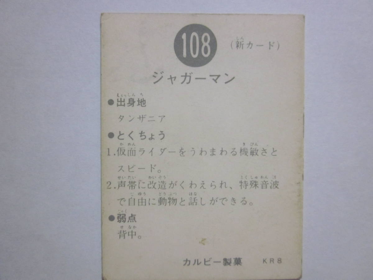 70年代のカルビー仮面ライダーカードです。状態は画像にてご確認下さい。同種他にも出品中です。送料は定形外郵便100円となります。
