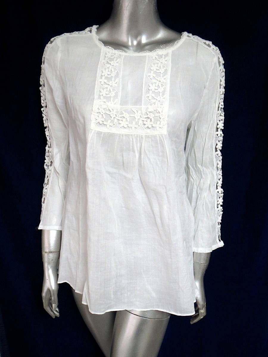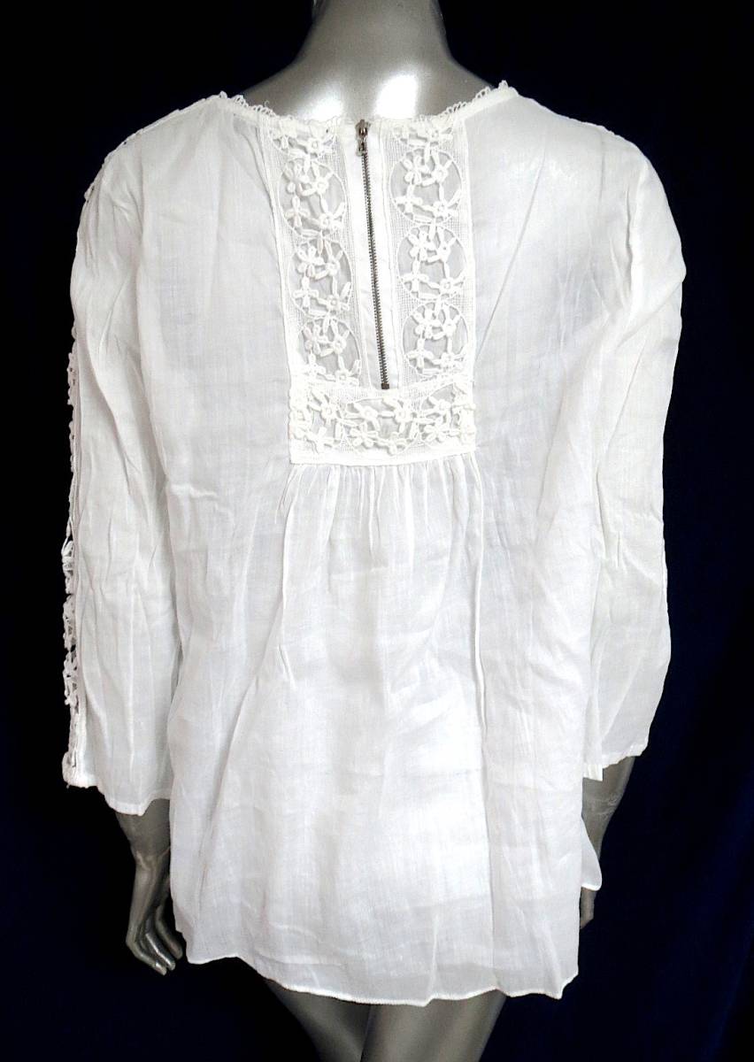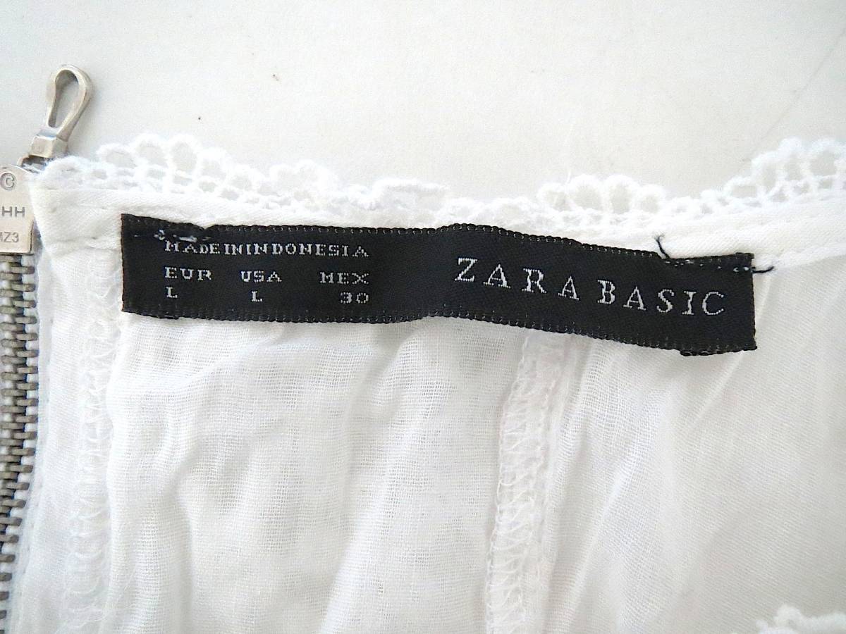 二点落札で送料無料! Z020 ZARA BASIC ザラ 白 長袖 レース ブラウス L レディース トップス B