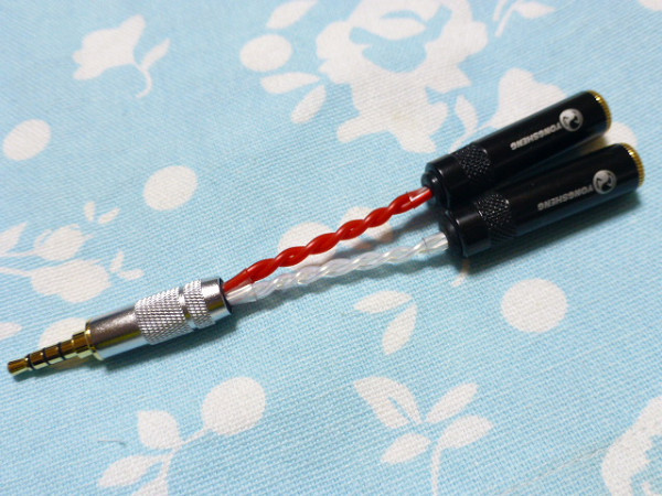 PHA-3式の「3.5mmプラグ×2形式」のバランスケーブルをHiFiMAN式ピンアサイン(L+R+L-R-)3.5mm4極形式に変換します。