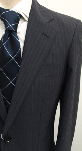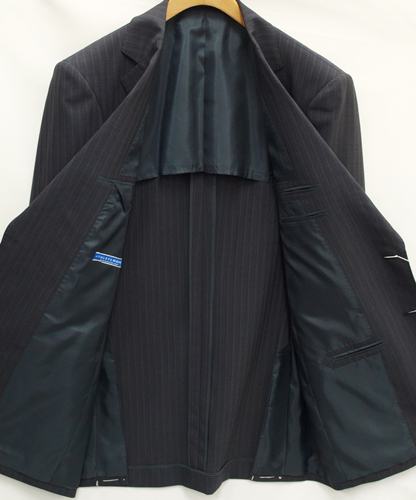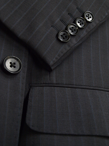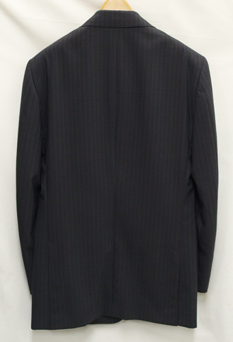 【サイズ】 Y6 (YL号相当) 目安の体型 身長170cm~180cm、ウエストサイズ78cm前後 【ジャケット実寸】 肩幅45cm 着丈75.5cm 袖丈61cm 脇下部分50cm 身幅46cm 【パンツ実寸】 ウエスト(胴回り実寸)78cm わたり幅31.5cm 股下10cm部分28.5cm 裾幅22.3cm 脇股上24.5cm 前股上26.5cm 股下92cm(裾上げしていない状態/新品) 【素材】 表地:ウール(毛)54% ポリエステル46% 裏地:胴裏/ポリエステル100% 袖裏/ポリエステル100% 薄手で軽くほどよいハリがある紳士スーツ用、春夏向け清涼軽量ウールブレンド素材を使用 【色】 ダークグレー 【柄】 ミディアムグレーの2本どりラインが1cm間隔ではいったストライプ柄 【デザイン】 ほどよいゆとりのあるシングル2つボタンスーツ、レギュラーフィット、ビジネススーツ新品、裾上げしていない状態です。 ・ジャケットはシングル2つボタンでレギュラータイプ ・パンツは股上は浅くなくウエストラインで履くタイプで、ゆとりをもたせたシルエットのワンタックスラックスです。 春~夏~秋口にかけて春夏シーズンに対応致します。 【縫製仕様】 ・ジャケットはシングル2つボタン、ノッチドラペル、襟元等AMFステッチ入り、袖口ボタン4つ、サイドベンツ、内ポケット4つ(小ポケット2つ含む)、背抜き(春夏物) ・パンツはワンタック、膝裏当て付き、脇ポケット斜め付け、後ろポケット左のみボタン付き、フロントはファスナーでホック仕様/うちかけボタンあり 細部にわたりきちんとしたビジネス仕様の縫製仕立てで仕上がっております。