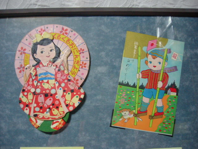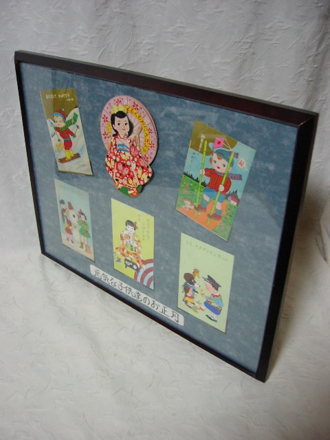 商品説明 ・・・   ガラス張りとした木額縁入りのインテリア アート、「デッドストックな可愛いポストカード5枚」と「昭和3211月号の月刊本「幼稚園」のふろく【 くるくるおにんぎょう ( ガラス上面にマジックテープで固定としていますが、取り外しも容易で 傘と足の部分がくるくると回転します )】」を組み合わせ 幼少の頃の楽しかっただろうお正月をイメージしてインターネット出品として見ました。タイムスリップ観賞品、心の拠り所を模索するインテリア アート品として「来客玄関先・個人書斎・接客応接間、そして贈答品用」として頂きたく思い 今回の特別出品と致しました。今回 出品の商品は、色合い そしてデザインも良く 毎年の年賀行事にも繰り返し再使用する事も出来、「元気な子供達のお正月」商品で「年を重ねた本年も 長きに渡り有難う !?」とするのも良いかも知れません ( )。木額縁入りのインテリア アート、「デッドストックな可愛いポストカード5枚」と「昭和3211月号の月刊本「幼稚園」のふろく【 くるくるおにんぎょう 】」は如何でしょうか ・・。ちなみに額縁の大きさが 53cm / 高さ 41,5cm と成っています。 ( 一口メモ : 楽しく遊ぶ素朴な子供達から「いっぱいの元気がもらえる商品」としました ・・ )