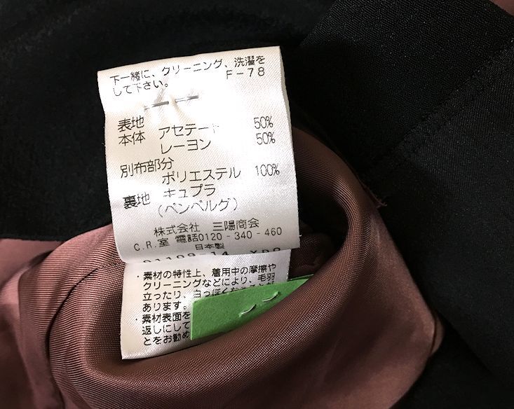 CONDITION:裏地の右袖ぐり下部に若干擦れがあります。表面は目立つ痛み無く美品に思います。中古品ですので神経質な方はご遠慮下さい。