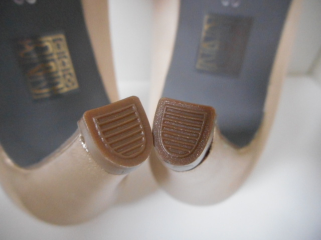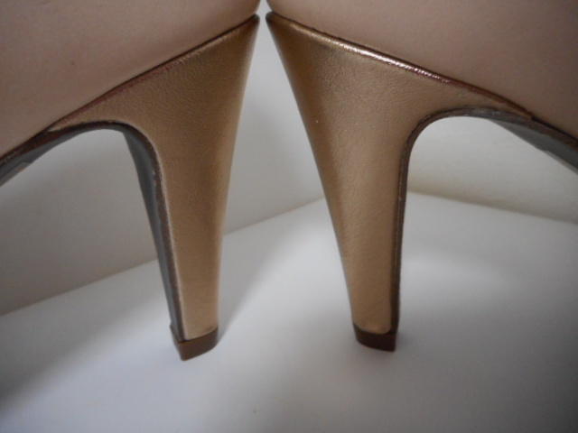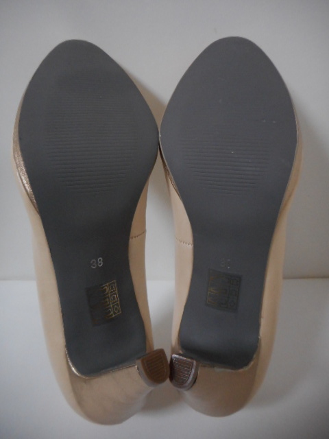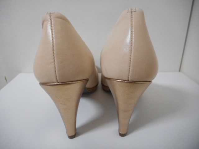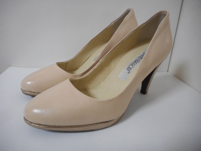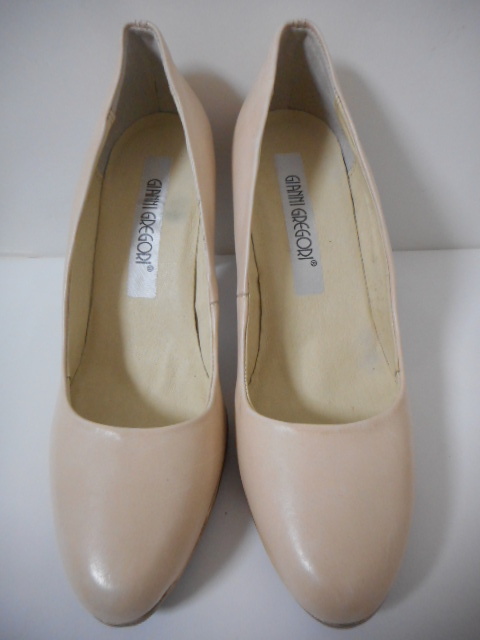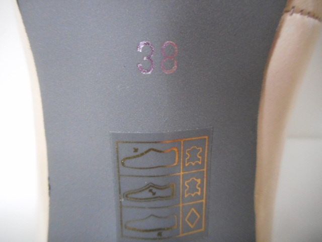 | 【ブランド・形態】 GIANNI GREGORI ジャンニ グレゴリ ラウンドトゥパンプス サイズ38(24.0cm)です。 【カラー 】 ベージュ/ゴールドです。 掲載の実物写真はPC環境や光の加減により実物と色合いが若干異なる場合があります。 【特徴】 9cmヒールの美シルエットに、厚い前底で傾斜を和らげた大人気のデザイン。 ヒールとストーム部分はゴールドでオシャレです。 ヒール高さ:約9.0cm 、ストーム高さ:約1.3cm、 最大幅:約8.3cm 【状態】 あまり使用感が無く目立つようなシミ・ヨゴレなどはないです。 問題なくご愛用いただける状態かと思います。試し履きしただけです。 保管時に付いた、目立たない小傷・色あせ・汚れがあります。 箱はありません。 【材質】 アッパー:合成皮革 アウトソール:合成底 【サイズ】 38(24.0cm)、ワイズ:記載なし、 質量:460g | |||
