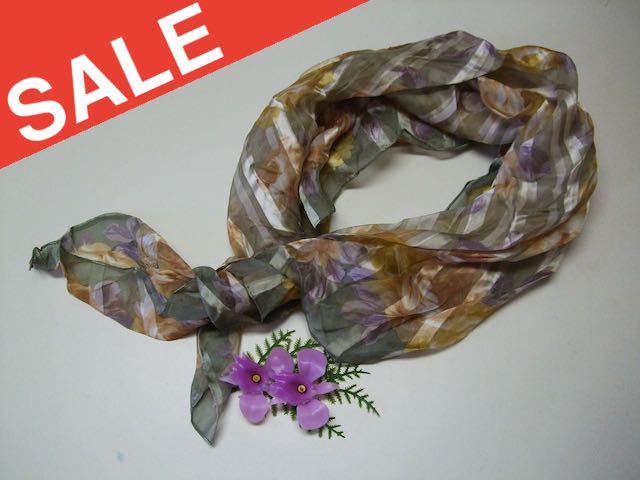 (^_^)絶品/大判スカーフ/Princess Frorence/プリンセスフローレンス/花柄/シースルー/紫/オレンジ/黄色/Z6
