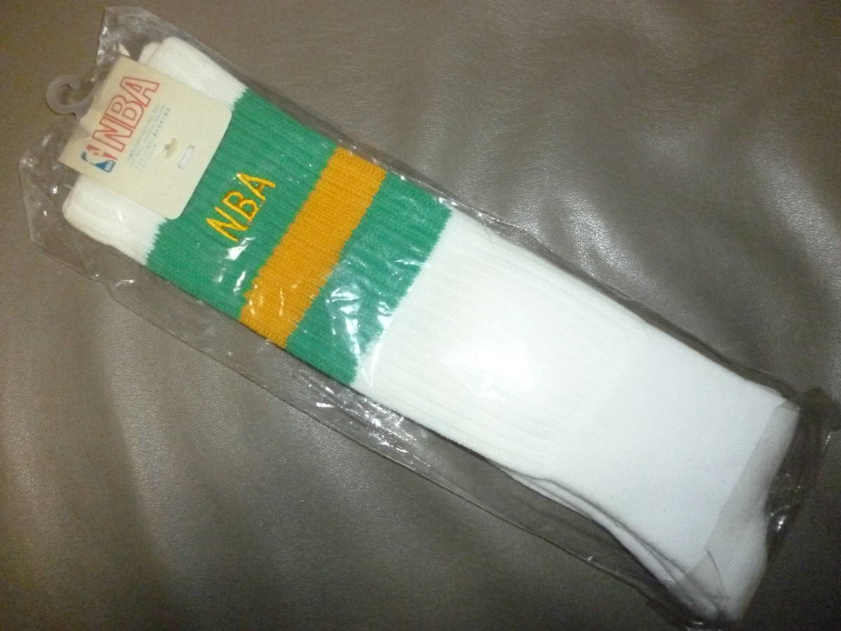 NBA バスケ バレー ハイソックス 緑・黄色・緑ライン バッソク 厚手パイル