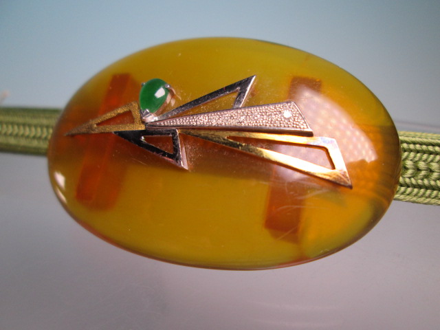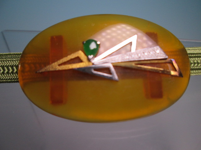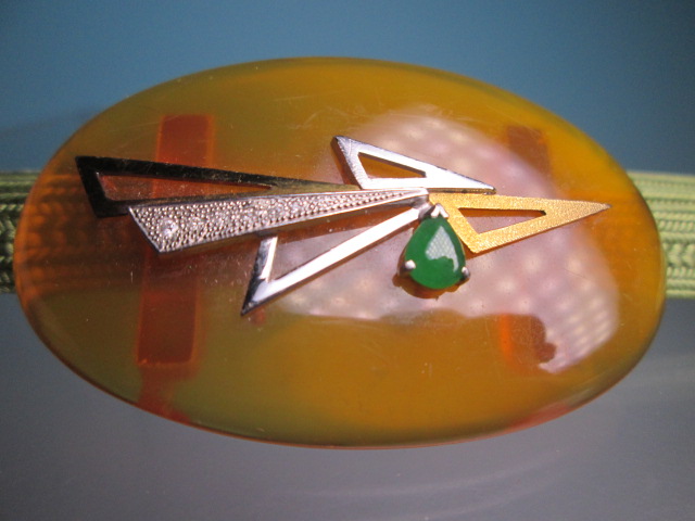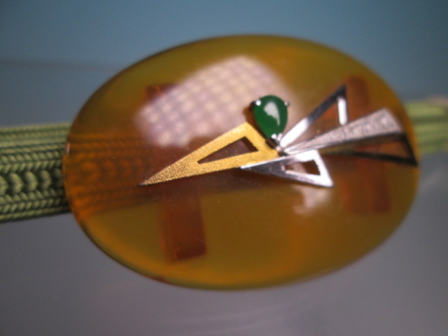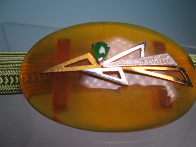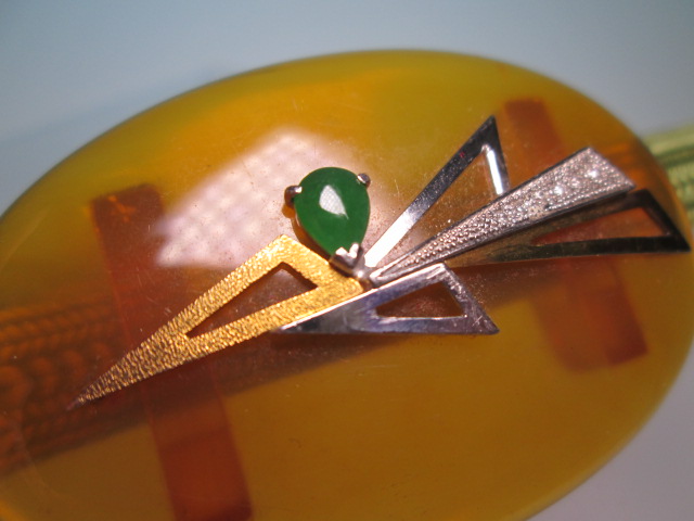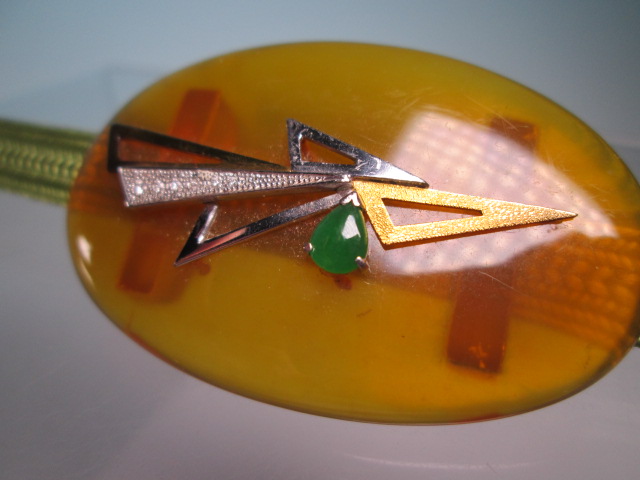 【江月】K18 本鼈甲 本翡翠/ダイヤ飾りの大振りな帯留め