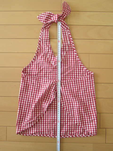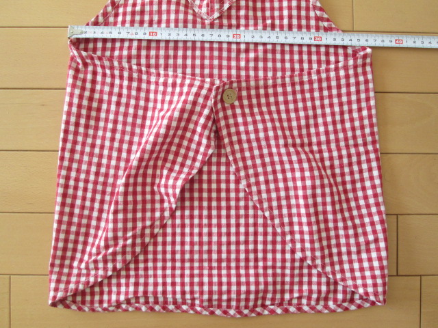 サイズ記載ありませんので不明です。結び加減やボタン位置で小学低学年から高学年と、広範囲で調節できると思います。