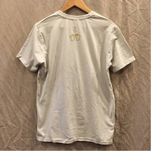 コットン100%のアイスグレーボディに金プリントと斬新なカラーリング。