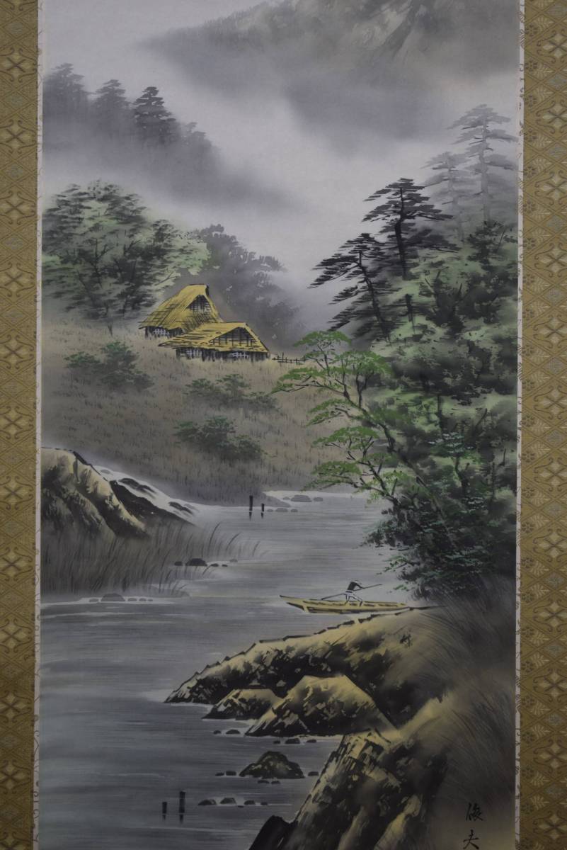 佐伯俊夫 山家漁舟図 桐共箱付