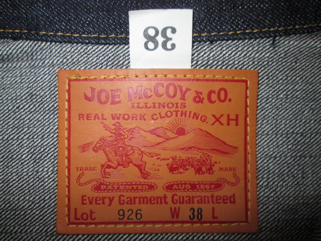 デッドストック 旧ジョーマッコイ LOT 926 2nd 38 JOE McCOY 旧リアルマッコイズ セカンドモデル デニム ジャケット Gジャン ジージャン