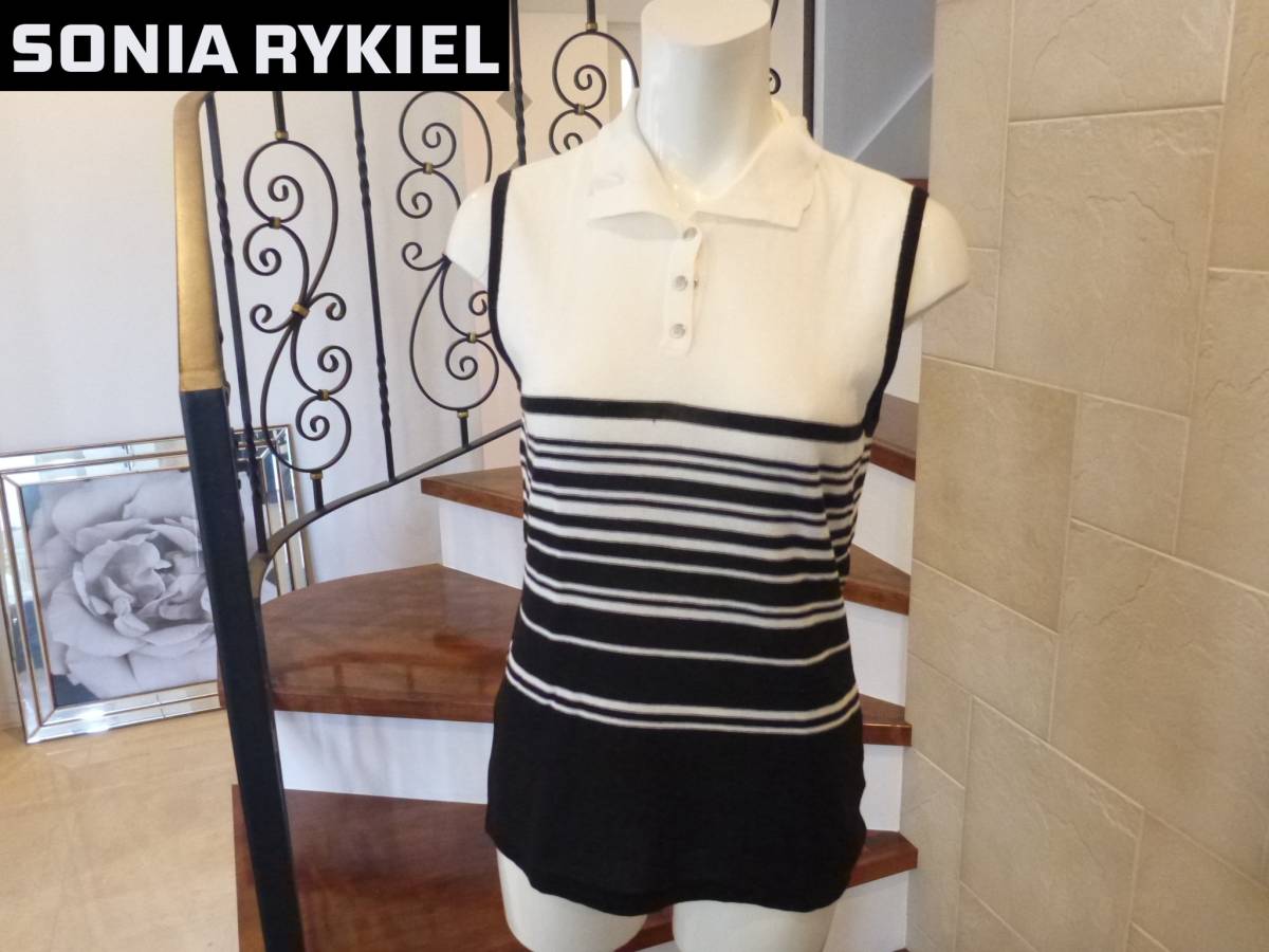 美品 SONIAソニア リキエル(Sonia Rykiel) 黒×白 ノースリーブ セーター 40  M相当