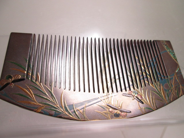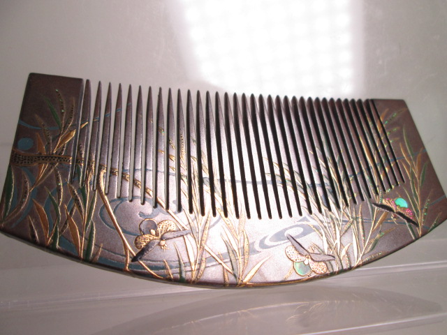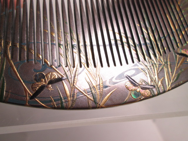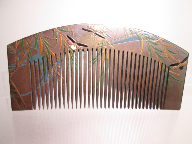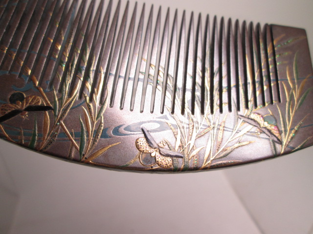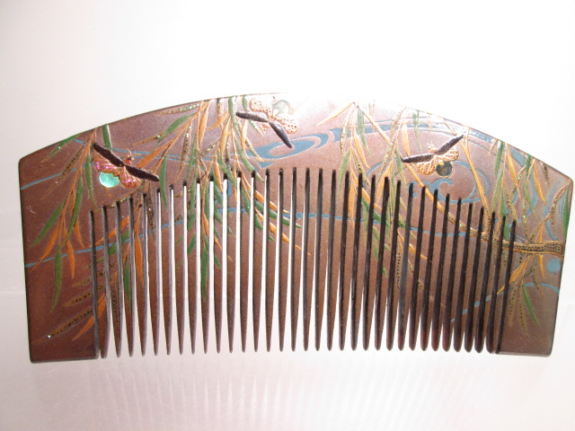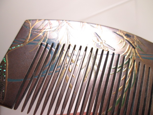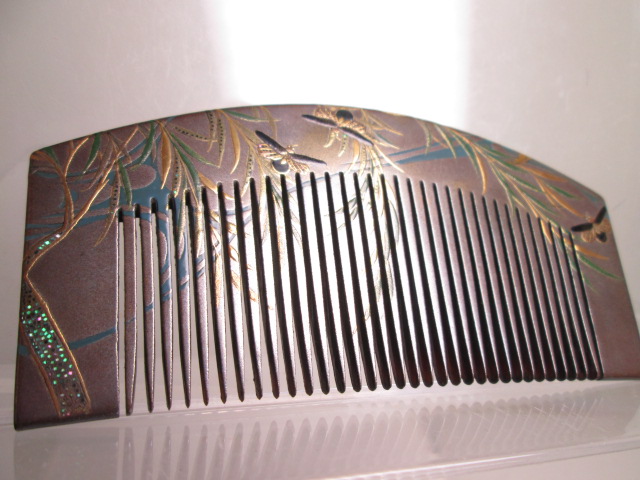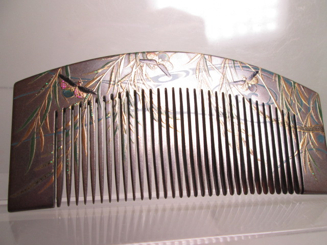 【江月】 アンティーク・芝翫香 本鼈甲螺鈿細工柳に蛍蒔絵の櫛 木箱付