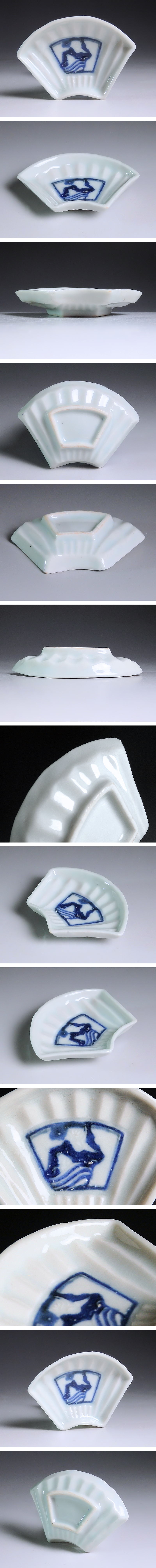 ★華心★ AMz-A063 古伊万里 染付 岩に波の図 扇形豆皿