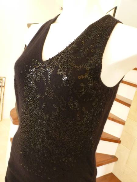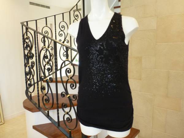 2.5万 NOVESPAZIO ノーベスパジオ 黒 ブラック ビジュー ノースリーブセーター 38 M相当