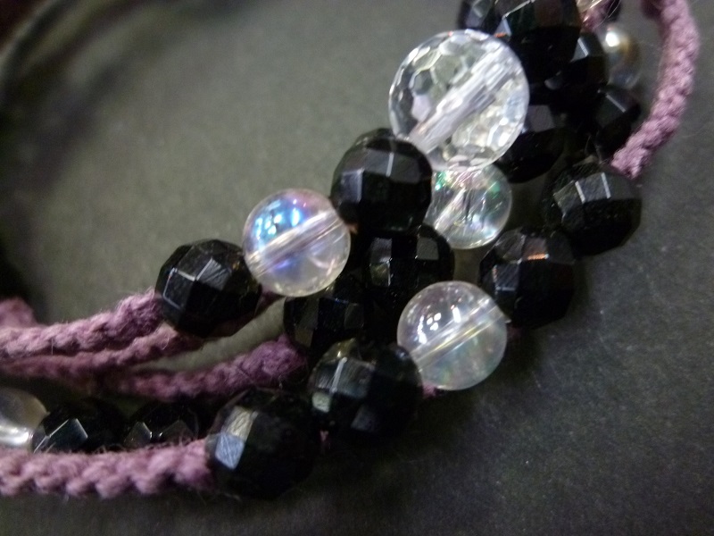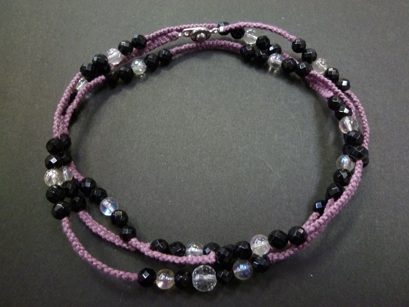 水晶 ホワイトオーラ オニキス 5連マクラメ ブレスレット