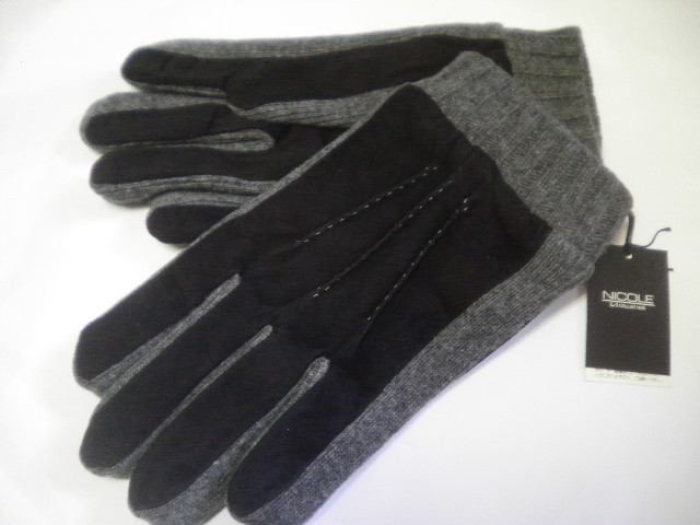 品 名 | 【SALEセール】*NICOLE ニコル*サイズ М 24cm/2点セット*豚革スェード&ニット *高級手袋*ブラック&グレー系カラー |