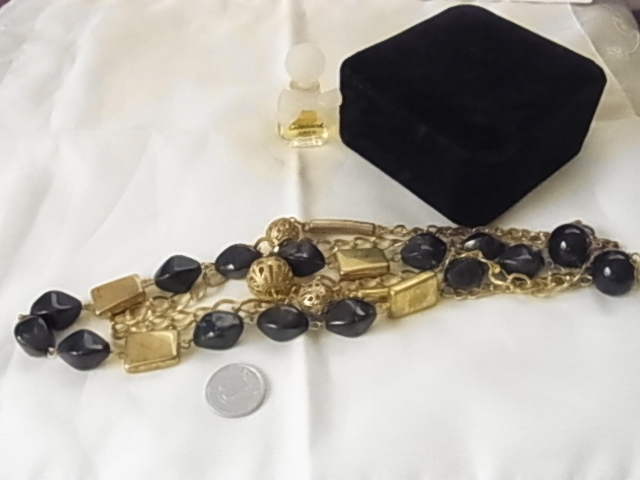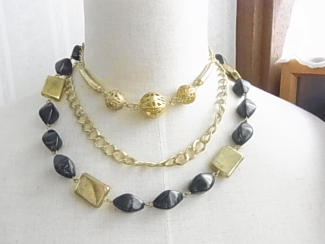 ★アジアンテイスト 3連の豪華なデザイン 黒×金色 ネックレス