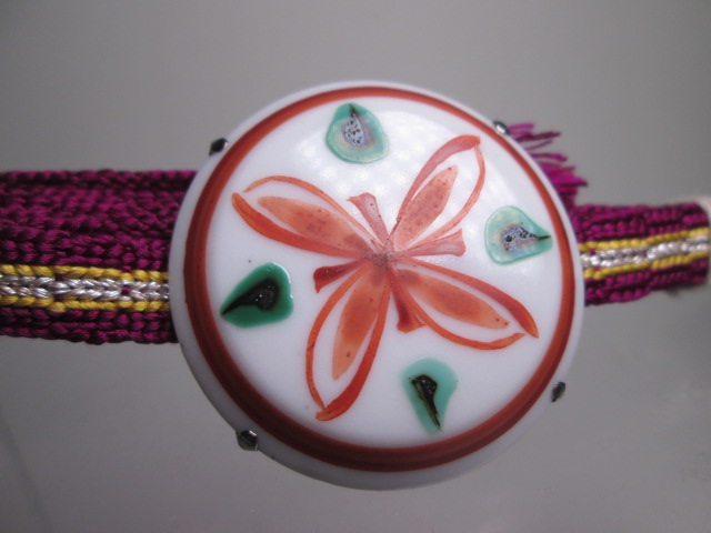 【江月】人間国宝 富本憲吉造 色絵四弁花紋の帯留め