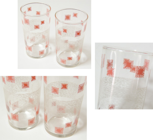 ヴィンテージ グラス 2個/ 50s,ロカビリー,エルヴィス,幾何学,FIFTIES,40s,アールデコ,レトロ,アトミック,ミッドセンチュリー,アンティーク