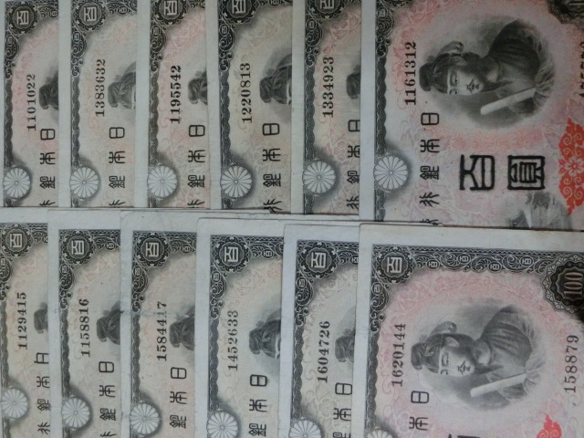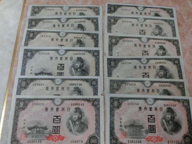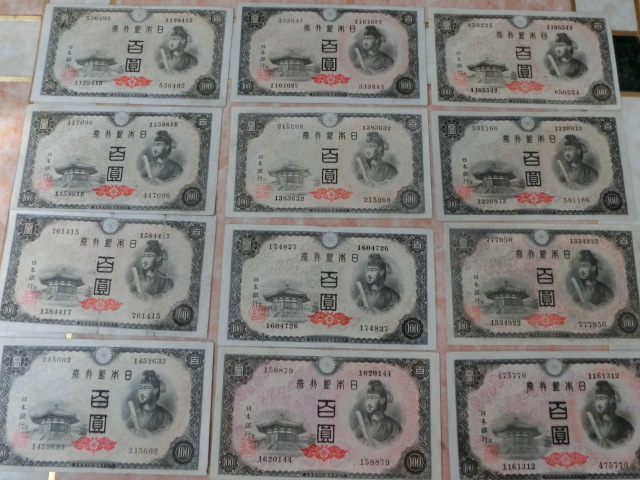 日本銀行券A号100円 4次100円全12印刷工場12枚セットです。