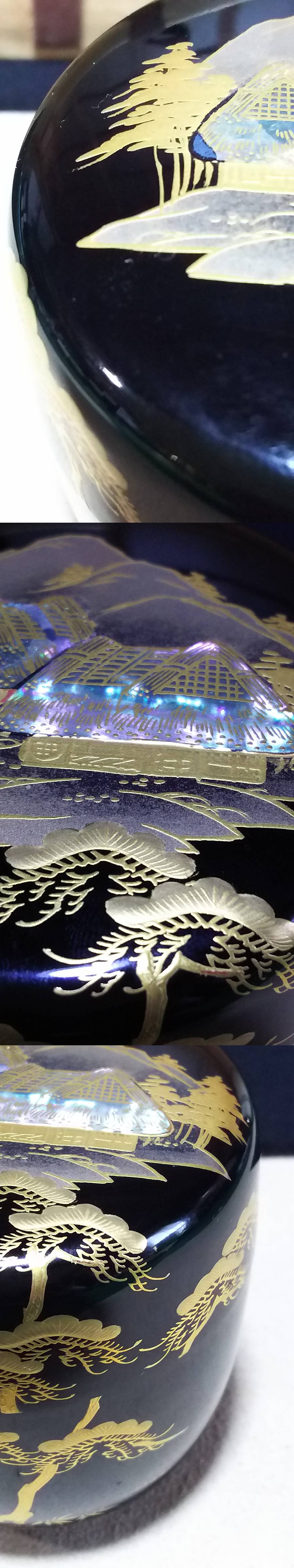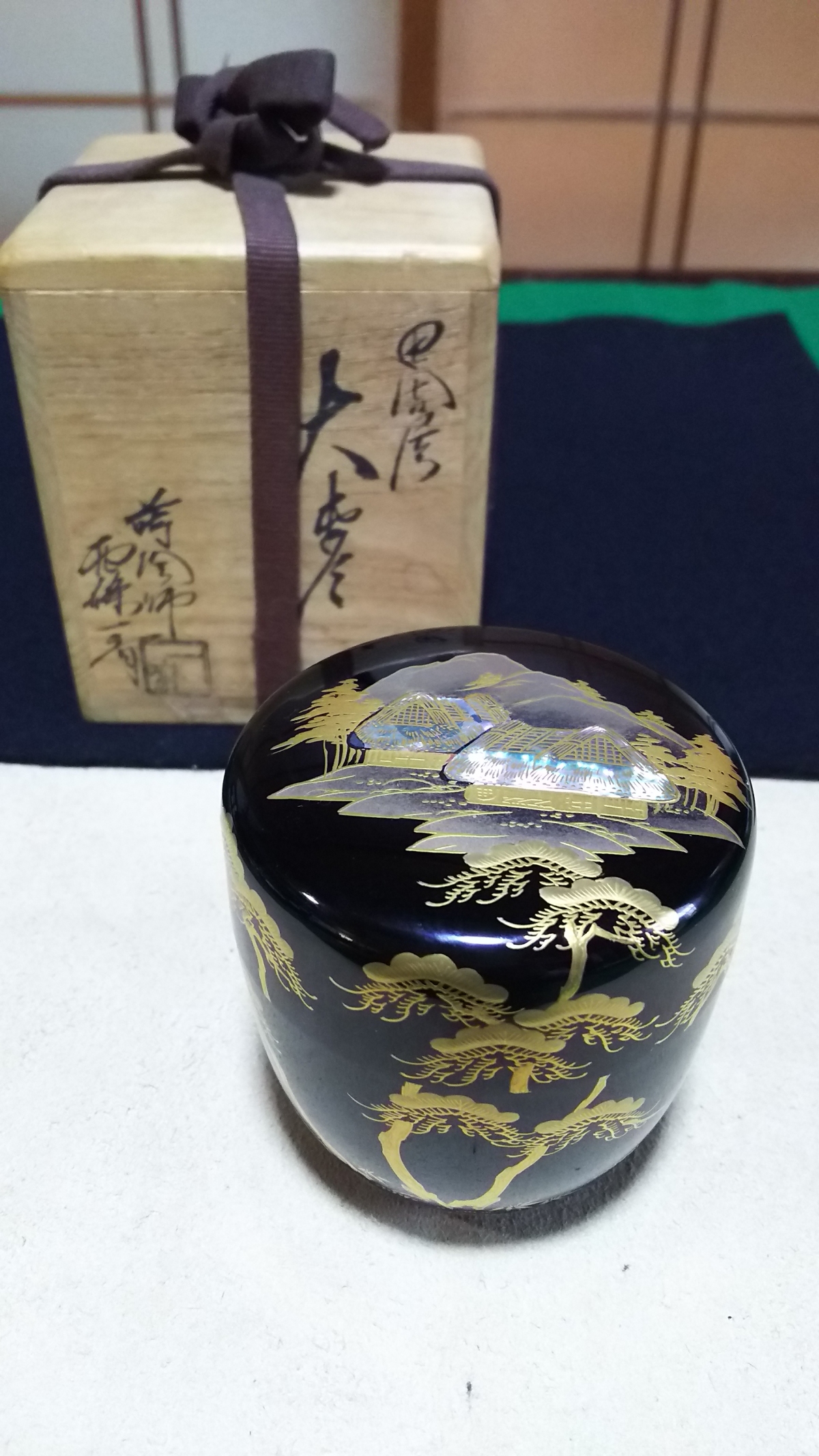 (鳥羽庵)うぶだし骨董茶道具田舎家棗(茶容れ)名工西岡 と蒔絵師西條一斎作共箱付 商品サイズ高さ7,4センチ横幅最大7,3センチ 共箱付 在銘一斎作 商品状態未使用保管品のです。田舎屋螺鈿と金蒔絵とても素敵な象嵌です。1ヶ所 象嵌削げ直し在ります。詳しくは、写真参照でお願いします。 下にフォトアップ写真ついてますので参照お願いします。古品につきノンクレームノンリターンでお願いします。 落札後48時間以内で連絡できる方4日以内で入金できる方入札待ってます。 発送は、ゆうパック60サイズにて発送いたします。