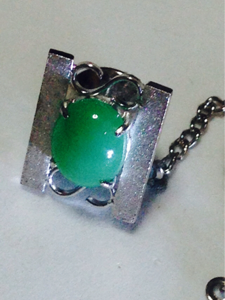 翡翠の美しい透かし彫りタイタックです、翡翠のサイズは8×6ミリです