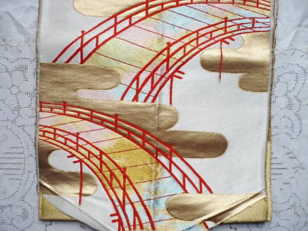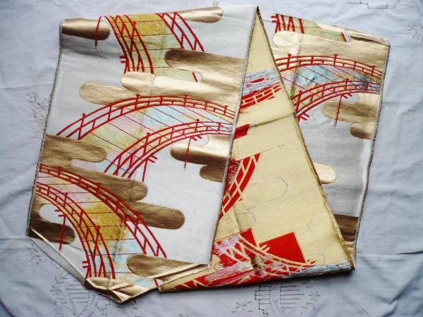 古い袋帯を付け帯に仕立てていたものを解いた布です。