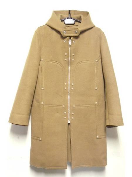 Van JACKET INC.のウールパーカコートです。ウール100%の1枚生地の切りっ放しで、前立て・背中・ポケット部分などにはリベット留めが施されています。トラディショナルとは一線を画した、デザイン性の高いとてもお洒落な1着です。