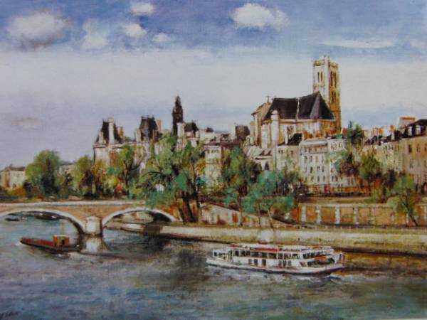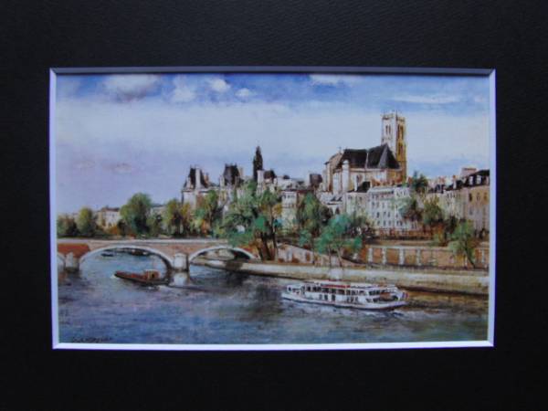 クラモアザン、【セーヌ河岸とルーブル】、希少画集画、新品額装付、送料無料、salt