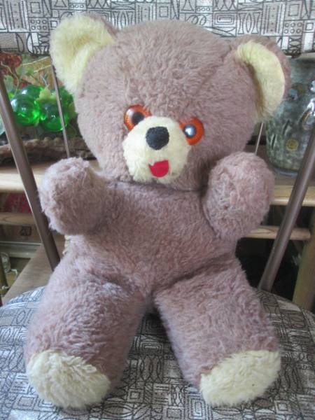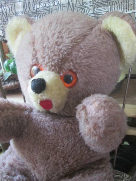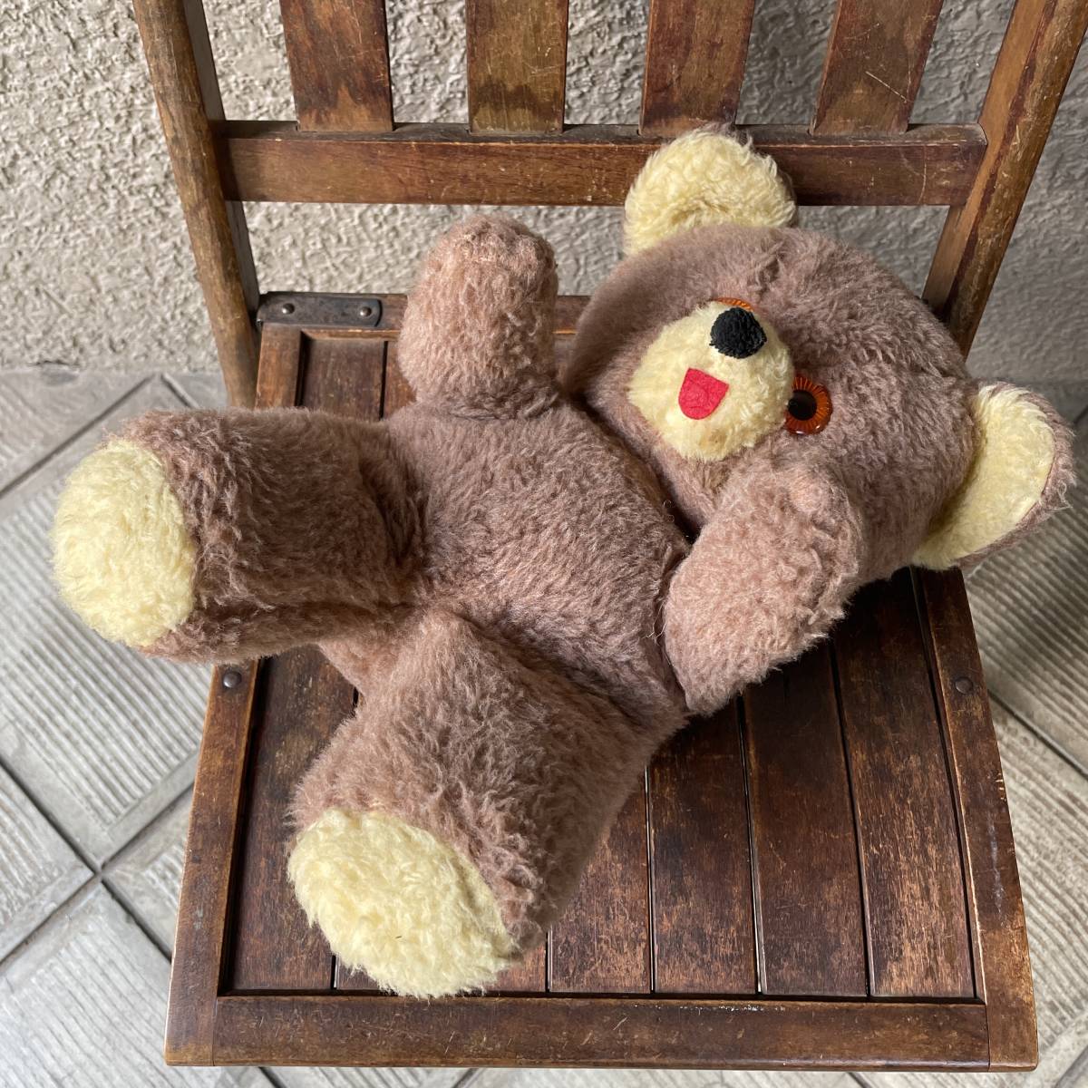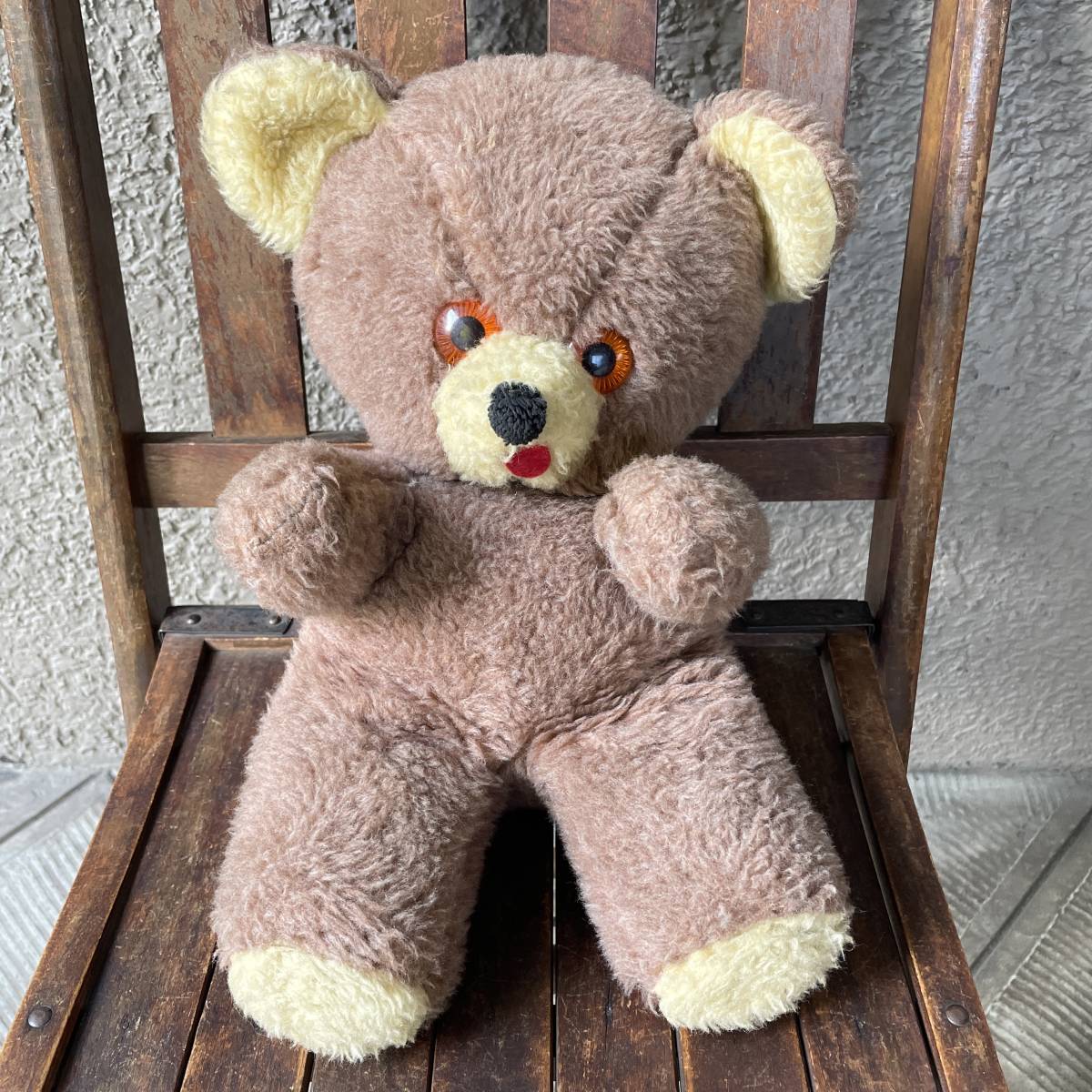 ★アメリカのアンティークショップで買い付けました熊のビンテージドールになります。  1960~70年代頃のビンテージ品で、お尻の金具を回すと音楽が流れます。全長37cm位です。   状態は特にダメージも無く良好です。ビンテージにご理解ある方 よろしくお願いします。