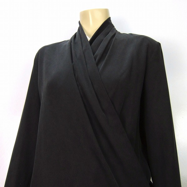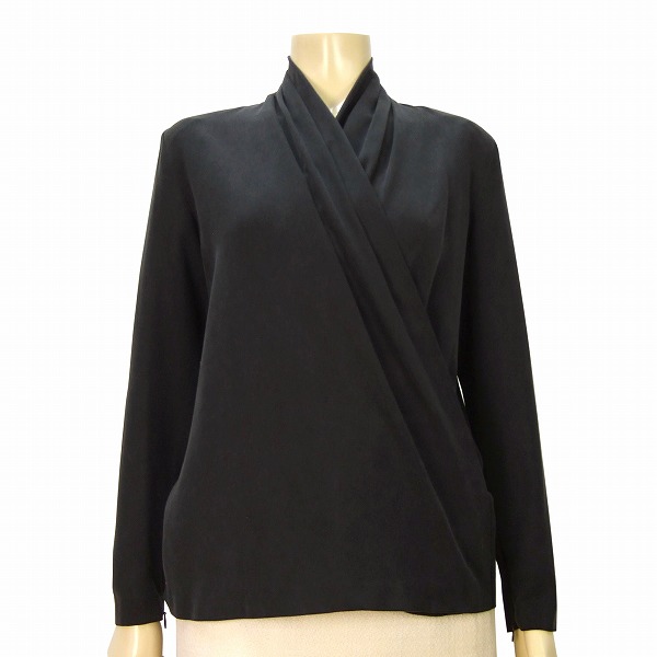 **・゜高級感溢れるMiss Diorの上質シルクジャケットです。綺麗なフォグブルー系のしっとり柔らかな高級シルク100%の贅沢生地×袖口ファスナー付き×襟元に3段タックが施された美形ドレープライン♪上品な大人のラップド風ジャケットです(下から被るタイプのジャケットデザイン)。*:.。