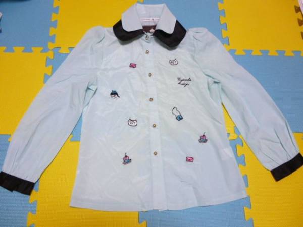 『ネコ・カメラ刺繍 丸襟ブラウス』