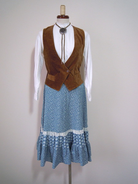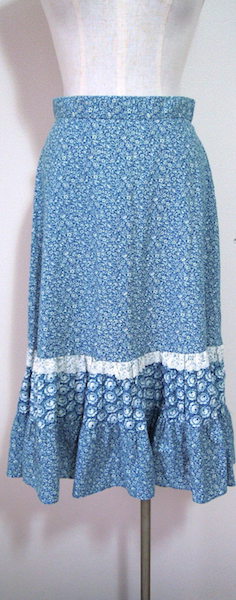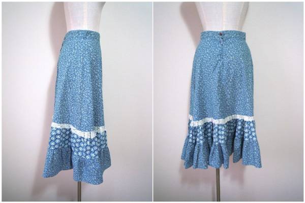 小花柄ヴィンテージスカート ”グレイッシュターコイズブルー”●USAアメリカ古着/水色/レース