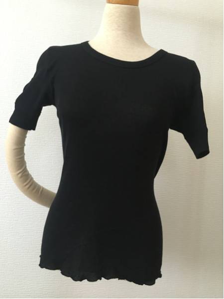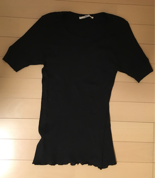 ZUCCA★脇に縫い目のないシームレスタイプ★リブ半袖ラウンドネックカットソー 黒 1