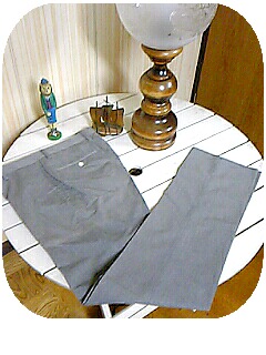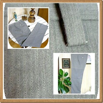 ザジャンク★モスグレー色シャドーチョークストライプ綿パンツW-83