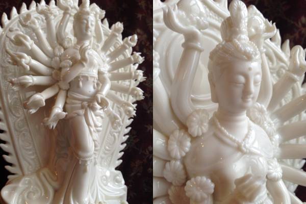 卍仏教美術 И徳化窯 『千手観音』 極細密 白磁 仏像 造形美 | ||||