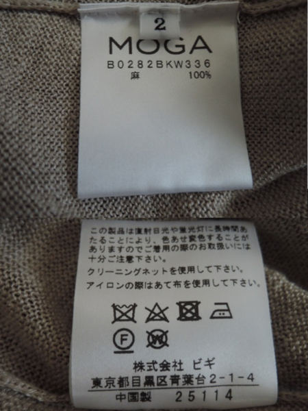 MOGA モガ LEUVEN リネン 麻100% Vネック バックロング 長袖ニット サイズ2