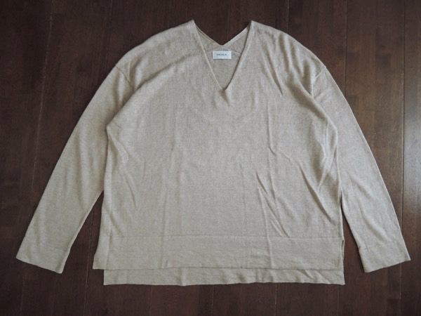 スッキリとしたV開きとゆったりとした身頃。スリットが少し入るデザインです。