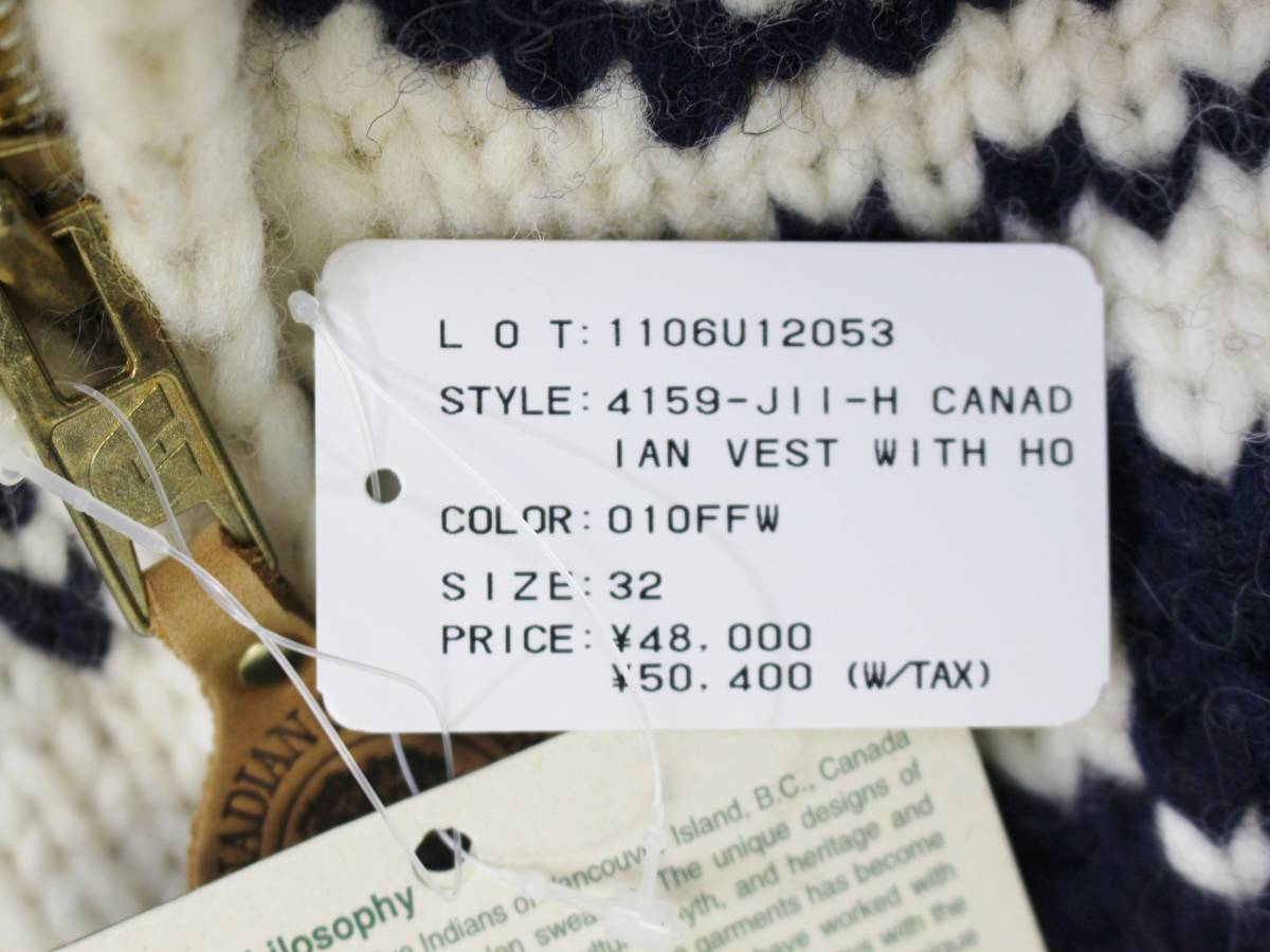 新品◆CANADIAN SWEATER カナディアンセーター◆カウチンセーター 雪柄 フード付き ニットベスト 32 定価48,000円