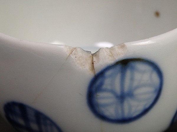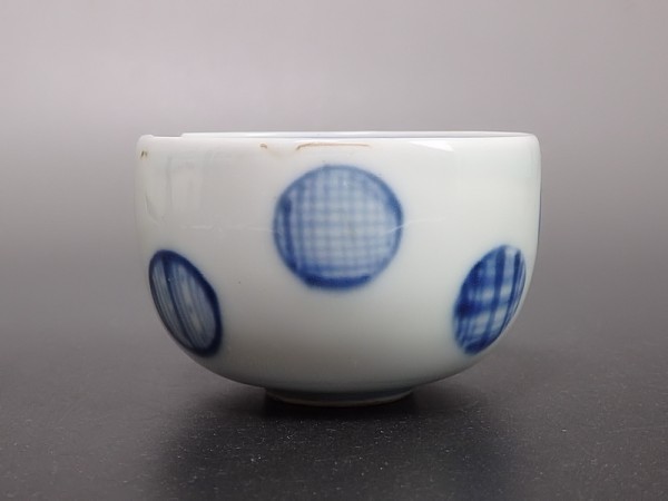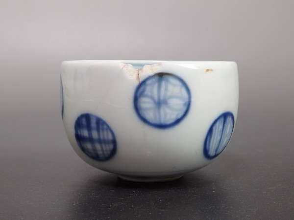 【金継材料】 156 古伊万里 染付 丸文の図 りん茶碗