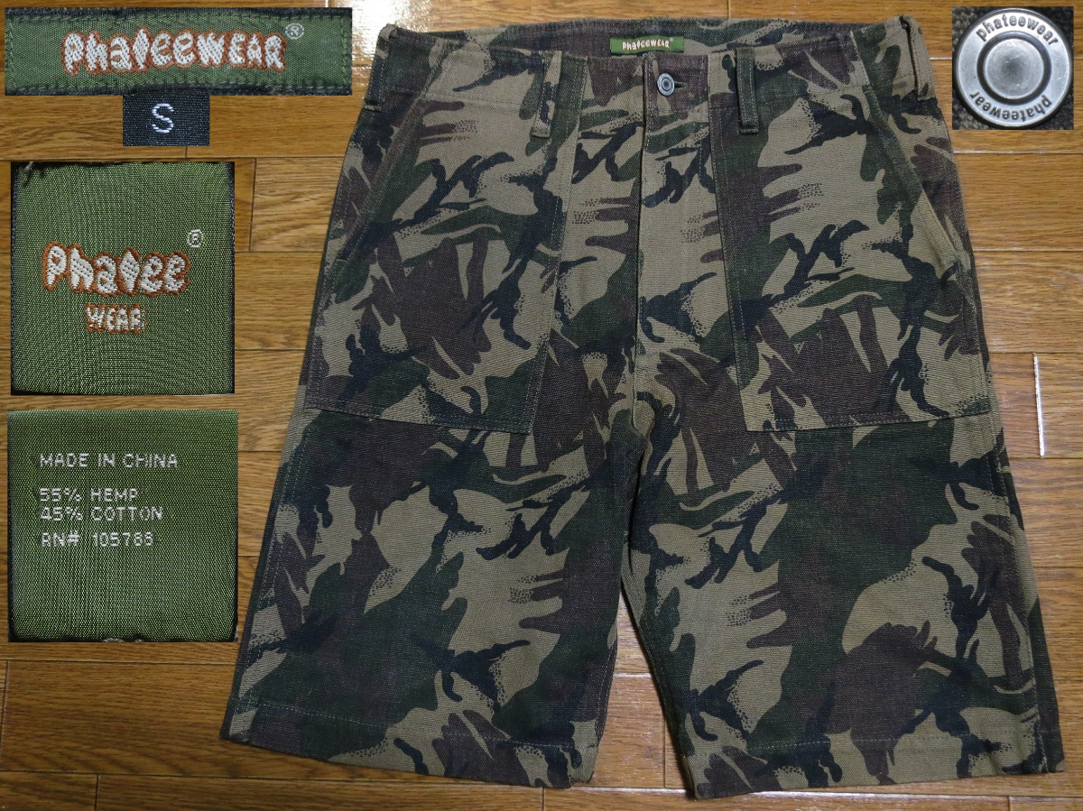 Sサイズ★ファッティーphatee迷彩【怪しい内側のポケット付き】ヘンプ混合55%麻【ショートパンツ】カモフラージュ【ハーフパンツ】★